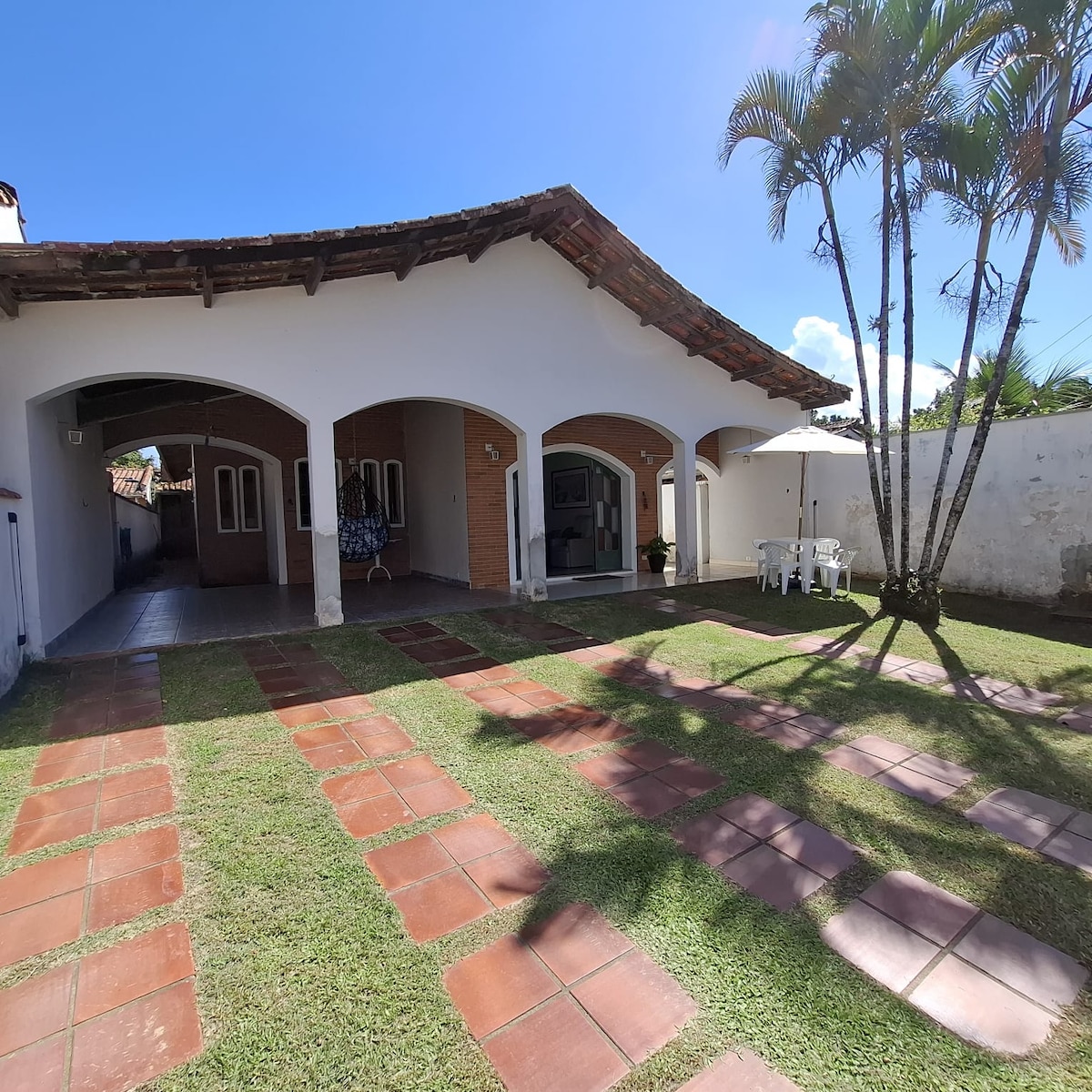 Очень близко от пляжа (30 метров) Приезжайте с семьей в это уютное место, чтобы расслабиться и послушать звук моря *ЭТО НЕ НА РИВЬЕРЕ* 📍 Дом расположен в Прайя-да-Энсеада, в районе Жардин-дас-Кансонс, рядом с SESC. ✨Тихая улица с небольшим движением. 🏠Новое и современное здание. 🛋️Уютный декор 🍽️Хорошо оборудованная кухня и зона для барбекю. 💧 Бассейн с озонированием и солнечным подогревом ☀️ Зимой, при солнечной погоде, температура достигает максимум 26°C. Глубина: 1,40м 🚐 Мы не принимаем ФУРГОНЫ.