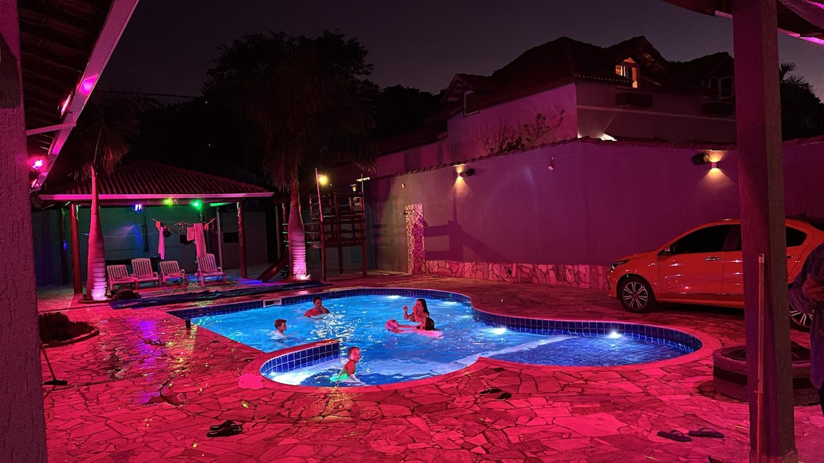 Casa moderna em condomínio fechado com segurança 24h. Estamos próximos à sede do condomínio que tem parquinho, lago, academia e quadra de futebol de areia. A casa tem 4 quartos, sendo 3 suítes e 1 quarto com banheiro fora do quarto. Apenas 1 suíte tem ar condicionado; os outros quartos tem ventilador. Temos na residência piscina, churrasqueira, quadra, cama elástica, pomar, forno de pizza. Ideal para famílias! NÃO LOCAMOS PARA EVENTOS!! Não excedemos o limite máximo de hópedes.