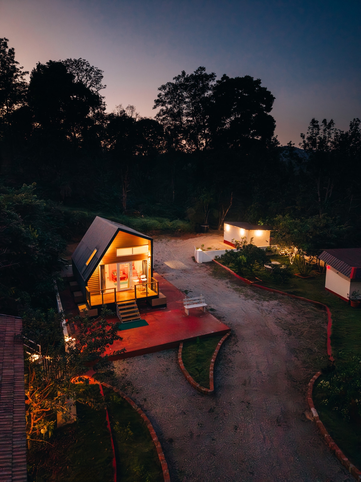 Welcome to Nature’s Peak Wayanad—our Scandinavian-style glass cabin set on a private fenced farm with a plunge pool. The main cabin has 2 bedrooms + 1 bathroom, and there’s a separate outhouse 20 ft away with a king bed and private bathroom. The entire space is exclusively yours. Enjoy our private viewpoint (short, steep hike). Our on-site caretaker family offers delicious home-cooked meals at extra cost, with 5-star service loved by guests.
