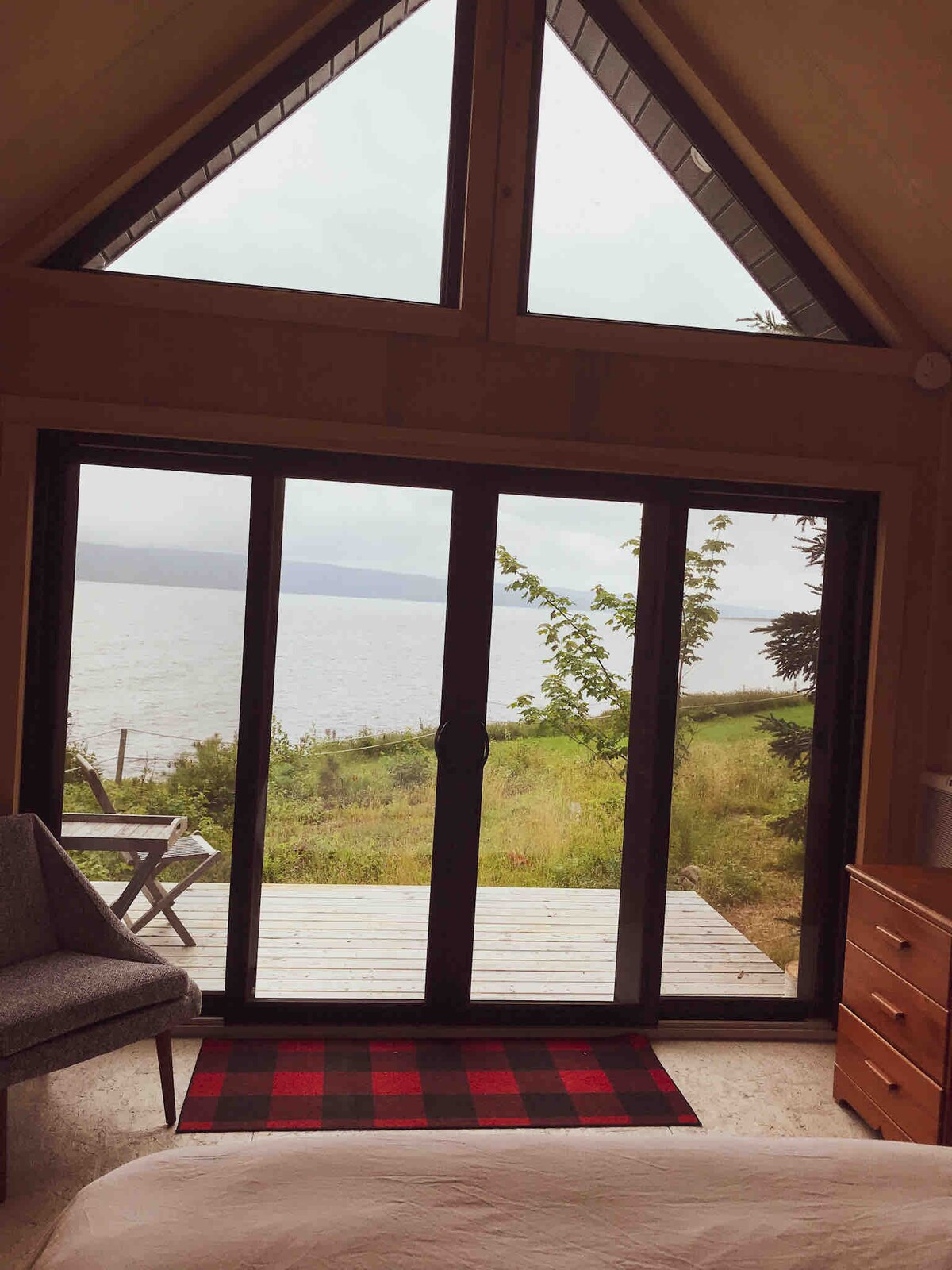 Perched high above Grand Étang, Cedar Peak offers sweeping views from highlands to ocean. Watch sunrise pour through the 13-ft window as you enjoy coffee in the open-concept living space. After a day of exploring Cape Breton, unwind on the panoramic patio at sunset. Purpose-built as a secluded, barrier-free chalet, Cedar Peak features a full kitchen, home theatre, and thoughtful comforts for an unforgettable stay.