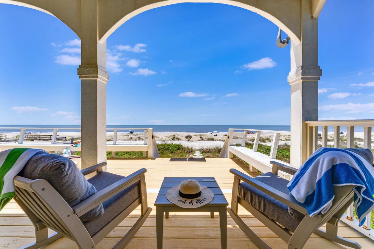 ПЛЯЖНОЕ ОБОРУДОВАНИЕ/СНАРЯЖЕНИЕ ВКЛЮЧЕНЫ: стулья, буги-борды, игрушки с песком и т. д. Это дом с 3 спальнями и 2 ванными комнатами с открытой планировкой, расположенный прямо на пляже. Полностью отремонтированный до шпилек, этот дом выглядит совершенно новым, с удобной мебелью и бесконечным видом на пляж. В главной спальне установлена двуспальная кровать размера King size, вторая спальня с двуспальной кроватью размера Queen size и третья спальня с двухъярусной кроватью размера Queen size.