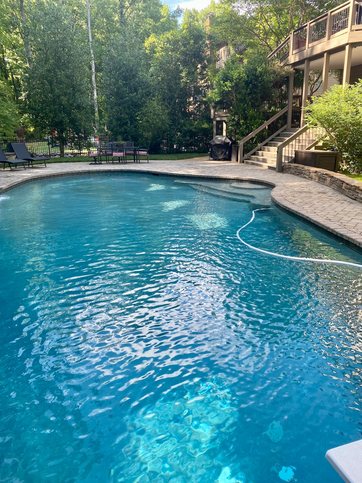 Кухня выходит на семейную комнату. Расслабьтесь на открытом воздухе на большой террасе для развлечений или просто отдыха в гидромассажной ванне. Основное - просторное жилье с обновленной ваннойкомнатой. Передвигаться по окрестностям - это легкий ветерок, так как до I485 всего 1,5 мили. Uptown Charlotte находится в 14 милях и в 5 милях, вы окажетесь в центре Мэтьюса или Минт-Хилл!