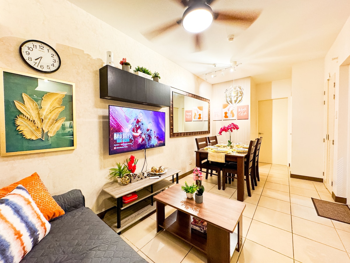 Вас ждет уютный отдых в Infina Towers Cubao Quezon City! Наслаждайтесь двуспальной кроватью размера Queen size + диваном-кроватью, полностью оборудованной кухней, стиральной машиной, горячим и холодным душем и телевизором Smart TV. Северная башня, 12-й этаж Рядом с остановкой легкого метро Anonas, банками и продуктовыми магазинами. Идеально подходит для пар, семей, поездок с друзьями, удаленной работы и бюджетного отдыха. Бронируйте сейчас!