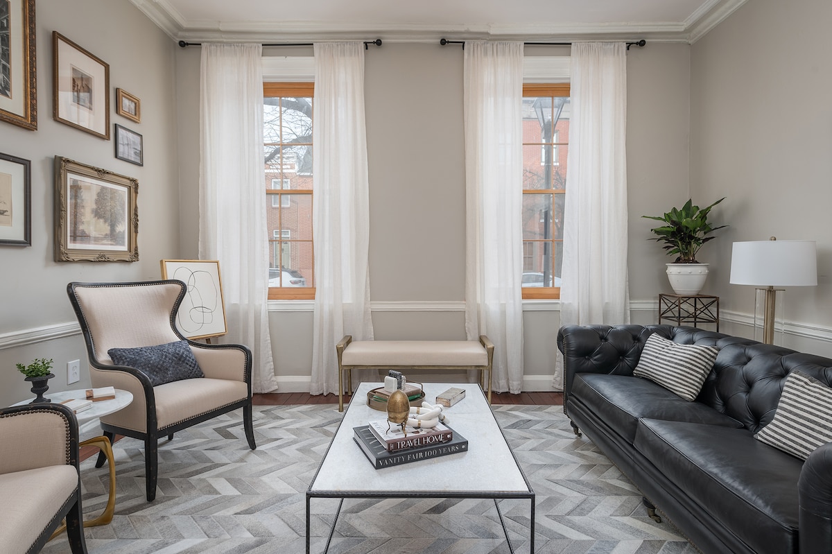 Наслаждайтесь этим просторным, отремонтированным историческим таунхаусом с одной из самых высоких террас на крыше в центре очень безопасного Федерального холма и спальными местами для 13 человек. Великолепный вид на город на крыше, отдельная ванная комната для каждой спальни, быстрый Wi-Fi на 1 ГБ, выделенное рабочее место, 2 парковочных места на подъездной дороге плюс 2 уличных разрешения на парковку, 55-дюймовый телевизор Roku и 0,2 мили (3 минуты ходьбы) от всех ресторанов/баров/магазинов Fed Hill. Достаточно далеко от ночной жизни, чтобы спать спокойно!