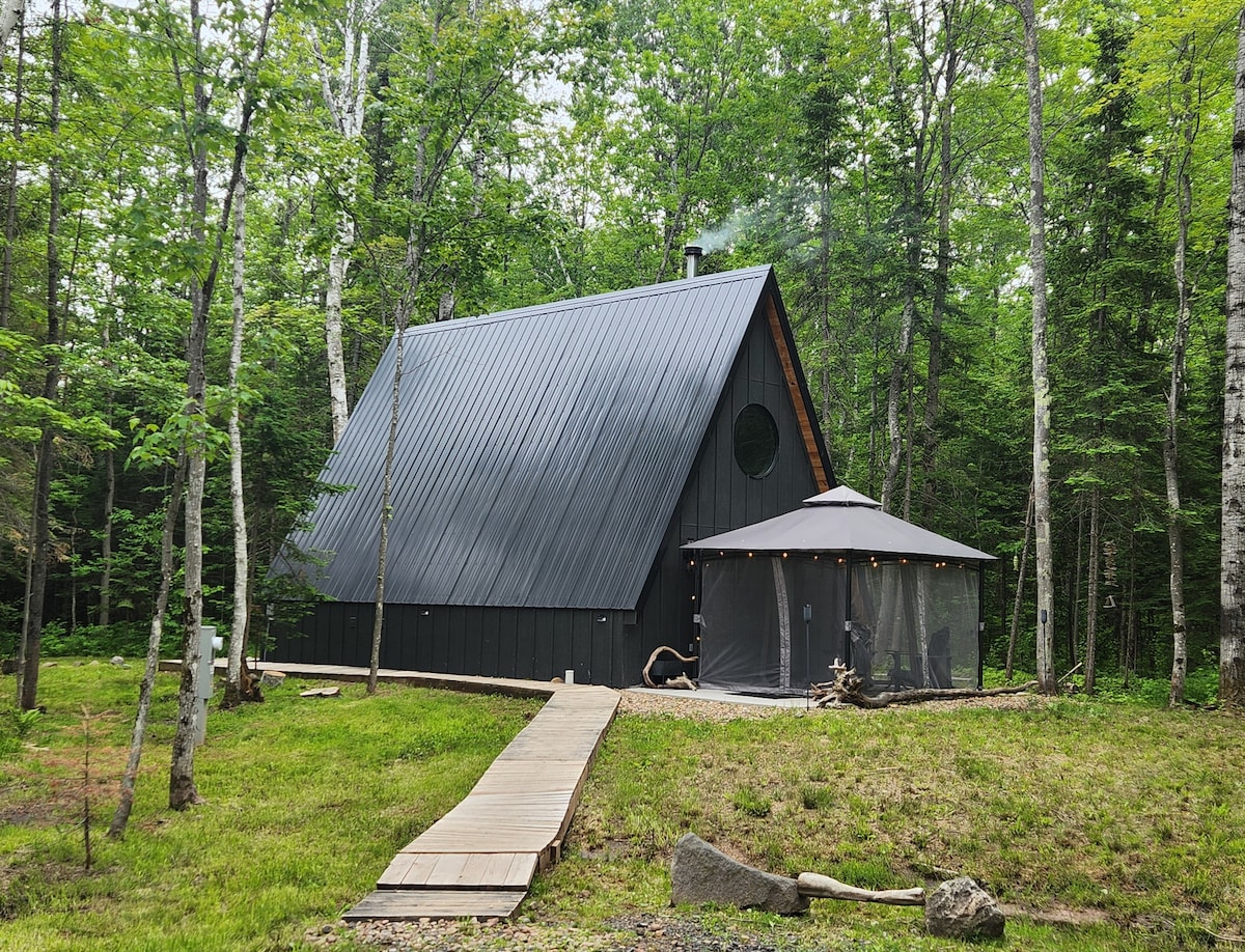 Современный, деревенский дом Aframe на 10 акрах леса; красивый, простой декор, полностью оборудованная кухня, вся техника, стеклянная варочная панель, духовка, фильтрованная вода/ледогенератор. Наслаждайтесь роскошной ванной комнатой с подогреваемым кафельным полом и душевой кабиной. Предоставляются полотенца, шампунь/кондиционер/гель для душа. Кровать размера King size на лофте и НОВАЯ кровать размера King size на основном этаже. Смарт-телевизор, Wi-Fi. Книги, игры Дровяная печь отлично обогревает домик в холодные месяцы. Предоставляется вся древесина. Также имеется мини-распределительный обогреватель/кондиционер.