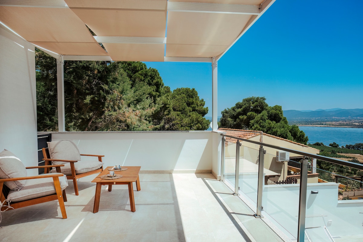 Вилла Shambala — двухуровневая терраса и бассейн Shambala Уютная и панорамная квартира с одной спальней, собственной террасой, захватывающим видом и душем на открытом воздухе. Двухместная спальня, современная ванная комната и гостиная с кухней. Идеально подходит для пар, ищущих тишину и отдых, или семей с маленьким ребенком. Общий бассейн с видом, Wi-Fi, кондиционер, стиральная и посудомоечная машины. В нескольких минутах от пляжей Порто-Пино. Неприватная уличная парковка.