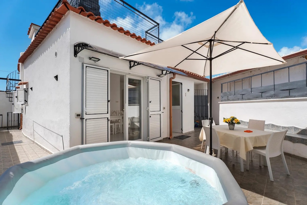 Квартира с панорамной террасой и джакузи, идеально подходит для путешественников со всего мира. Расположена в центре города, в стратегическом месте на главной улице Казамиччолы, всего в нескольких шагах от моря. В нескольких минутах ходьбы находятся порт, автобусная остановка и широкий спектр услуг: супермаркеты, магазины, рестораны, исторические места, спа-салоны и термальные парки. Идеальное расположение, если вы приезжаете в Искью по делам или ищете отдых, наполненный расслаблением и весельем.