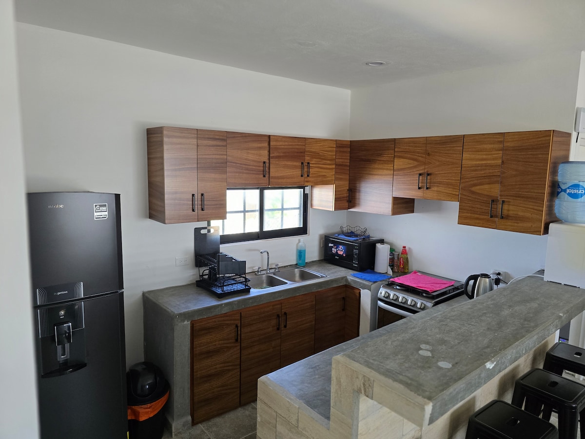LoftTao · Идеально подходит для семей и пар, которые приезжают на остров и ценят спокойствие, тишину и удобное расположение. Отличный вариант, если вы цените спокойствие, отдых и уединение. В квартире есть большая собственная терраса, где можно подышать свежим воздухом и спокойно поработать. Предназначено для краткосрочного или длительного пребывания Высокоскоростной Интернет. Простое, функциональное и практичное жилье. В полуквартале от жилья находятся пункты выдачи денежных переводов Oxxo, банки, аптеки, рестораны и все необходимые услуги, а также в полуквартале от жилья проходит прибрежная набережная.