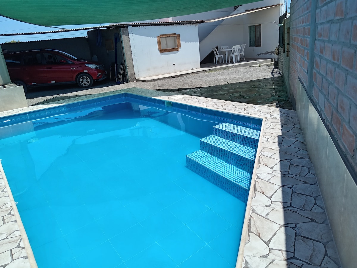 Relájate con toda la familia en este tranquilo lugar para quedarse en vacaciones. Contarás con una casa completa con amplia piscina en el primer piso, acceso directo a la playa, terraza con parrilla, agua caliente, todos los servicios y completamente amoblada. Además podrás disfrutar de las instalaciones de nuestro condominio como canchas de froton, tenis, fulbito, Voley, piscinas y fogateros en la playa. Ideal para familias.