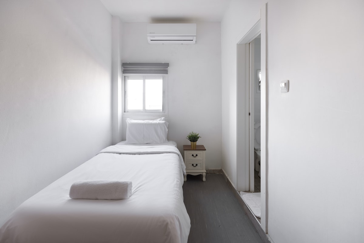 Расположена в центре города (ул. Яффа). Всего в 3 минутах ходьбы от легкорельсового транспорта, всего в 7 минутах ходьбы от Старого города (Западная стена, Церковь Гроба Господня, Виа Долороза, торговый центр Mamilla Mall, Купол Скалы, Башня Давида, Масличная гора). 7 минут пешком до рынка Махане-Иегуда. В распоряжении гостей собственная ванная комната, постельное белье, полотенца и шампунь. Кондиционер, телевизор с плоским экраном и подпиской на Netflix и YouTube, бесплатный Wi-Fi. В общем доступе находятся общая кухня и общий балкон.