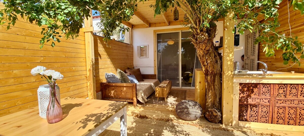 Откройте для себя убежище для гостей! Удобная двуспальная кровать и уютный диван для телевизора и отдыха. Наслаждайтесь завтраками на открытом воздухе и винными вечерами за столом на заднем дворе. Просторный шкаф и идеальный обеденный/компьютерный стол. Предоставляются пляжные полотенца и сноркелинг. Легкая уличная парковка. 52-летние жители Эйлата, гордится нашими отзывами и готовы принять вас! Забронируйте жилье сейчас и насладитесь отдыхом!
