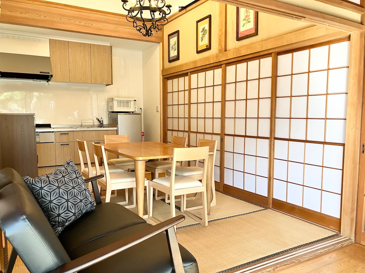 Добро пожаловать на пляжную виллу Twilight Villa Onsen, окруженную садом в японском стиле!До станции Ондзюку, пляжа Ондзюку, супермаркета, магазина и множества ресторанов можно дойти пешком! Вы можете расслабиться, любуясь садом, поесть в местной таверне или ресторане, или приготовить и насладиться свежими морепродуктами, купленными в местном рыбном магазине. Семьи, пары, коллеги и друзья могут насладиться не только серфингом, сапсерфингом, морскими черепахами, пикниками на мелководье и походами с детьми с видом на мощные морские скалы! Та же цена для максимум 4 человек.Он может вместить до 5 человек.