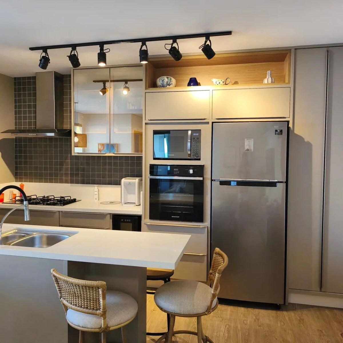 Стильная и функциональная студия в Z Convivence, в центре города Шапеко. Идеально подходит для деловых поездок, отдыха или медицинских визитов. В здании есть тренажерный зал, сезонный бассейн, крыша с потрясающим видом, коворкинг, круглосуточная охрана и магазин самообслуживания. В студии есть кровать-шкаф с постельным бельем плотностью 600 нитей, кондиционер с горячим/холодным воздухом, Smart TV, быстрый Wi-Fi, полностью оборудованная кухня и качественный душ.