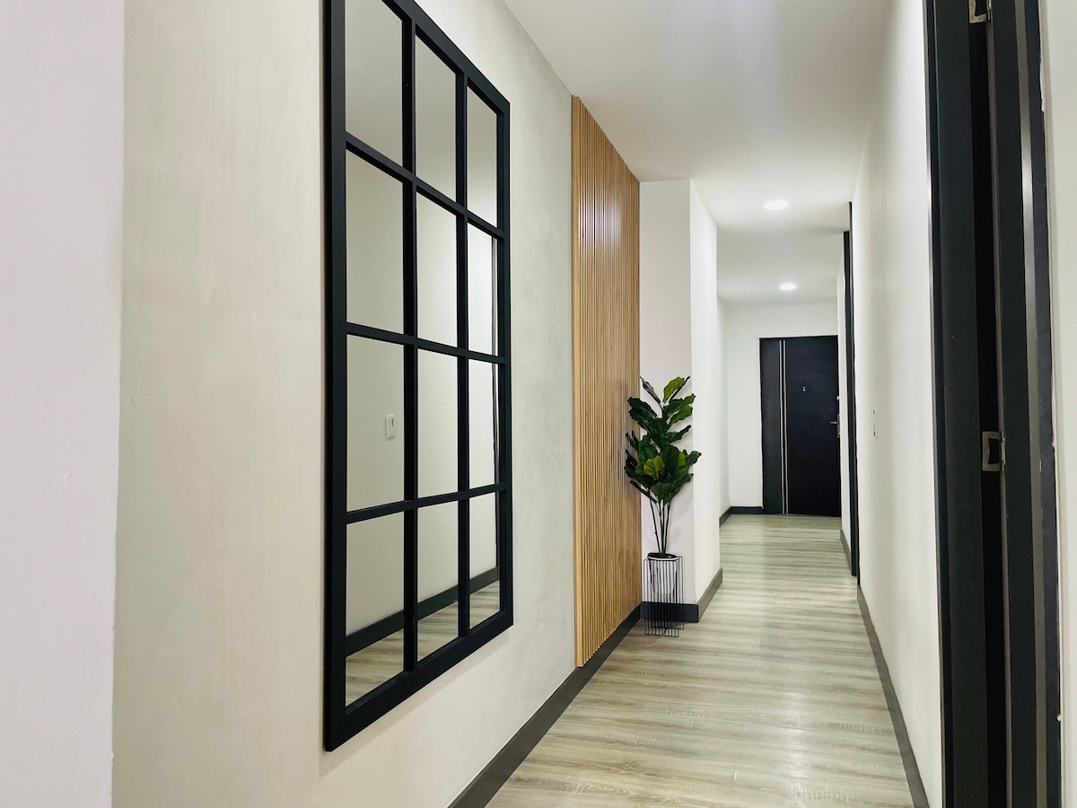 Почувствуйте комфорт и стиль Современная новая квартира с оборудованной кухней, высокоскоростным Wi-Fi, стиральной машиной, кабельным телевидением и Netflix. Наслаждайтесь удобствами в ванных комнатах и кухне, созданных для вас. Расположена в нескольких шагах от торгового центра Arrayanes, в 5 минутах от главного парка Итагуи и в 10 минутах от метро. Идеально подходит для деловых поездок или отдыха, сочетает в себе стратегическое расположение, комфорт и дизайн, чтобы сделать ваше пребывание незабываемым.