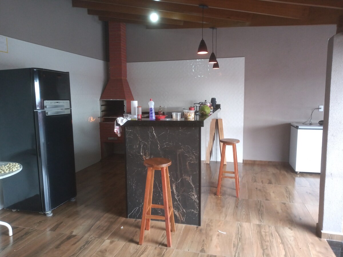 Загородный дом с бассейном с солнечным подогревом. На открытой кухне есть: предметы первой необходимости, холодильник, морозильник, микроволновая печь, фильтр для воды, фритюрница, кофеварка 3 сердца, SmartTV и 2 ванные комнаты. - Wi-Fi. 🛜 - костюмы с кондиционером. В гостинной есть ванная комната, удобный диван и SmartTV - Посетите Chácara только для 10 человек. - Chopeira не входит в стоимость пакета. - Мы не предоставляем подушки и одежду. кровать/ванна - Загрузите посуду и вынесите мусор после выезда.