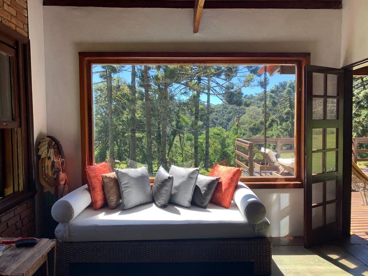 Casa ampla com a frente inteira de vidro possibilitando ver todos os dias um maravilhoso pôr do sol da própria sala.Todos os cômodos da casa têm vista para as montanhas. Localizada no alto da Serra da Mantiqueira. Sala de jantar e estar é integrada com a cozinha e com uma lareira. 2 quartos com cama de casal e 1 mezanino com um colchão de casal. Na área de lazer temos 1 piscina,estamos construindo novas áreas,mas quando houver hospedes não haverá trabalho.