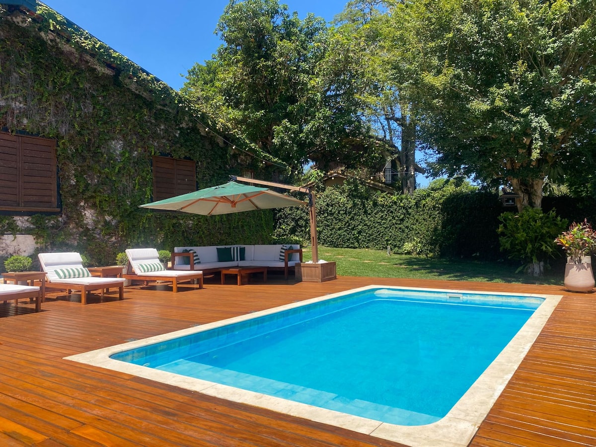 Максимальное количество гостей: 16 человек. Размещение мероприятий запрещено. Наше жилье - настоящий зеленый отдых в SP. В вашей группе будет площадь более 15 000 квадратных метров, с бассейном, игровой комнатой, Wi-Fi, пляжным теннисным и футбольным полем, барбекю и печью для пиццы в уютном семейном доме. Во всех номерах есть ванная комната, вентиляторы и одеяла. Порадуйте фруктовые деревья, красивые птицы, захватывающее звездное небо и национальный лес Ипанема!