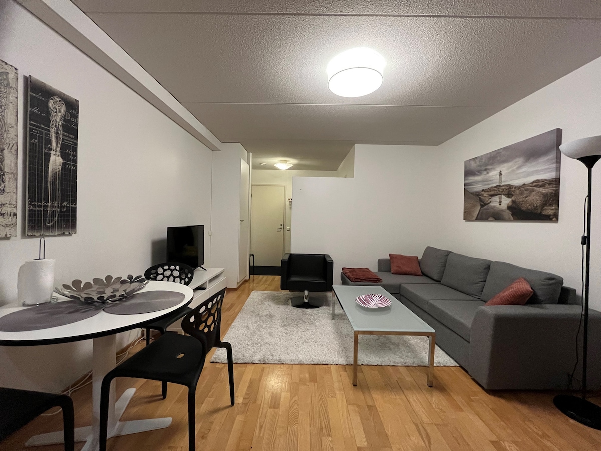 Take it easy at this unique getaway and enjoy your stay in this fairly new 34 m2 condo & studio (+13 m2 balcony). Calm neighborhood with excellent transportation connections makes accommodation comfortable and makes you feel like home. The bus stops are located right near near the apartment and the metro station is only a 5-minute walk away (450 meters from the apartment) which takes you to the city center within 12 minutes.