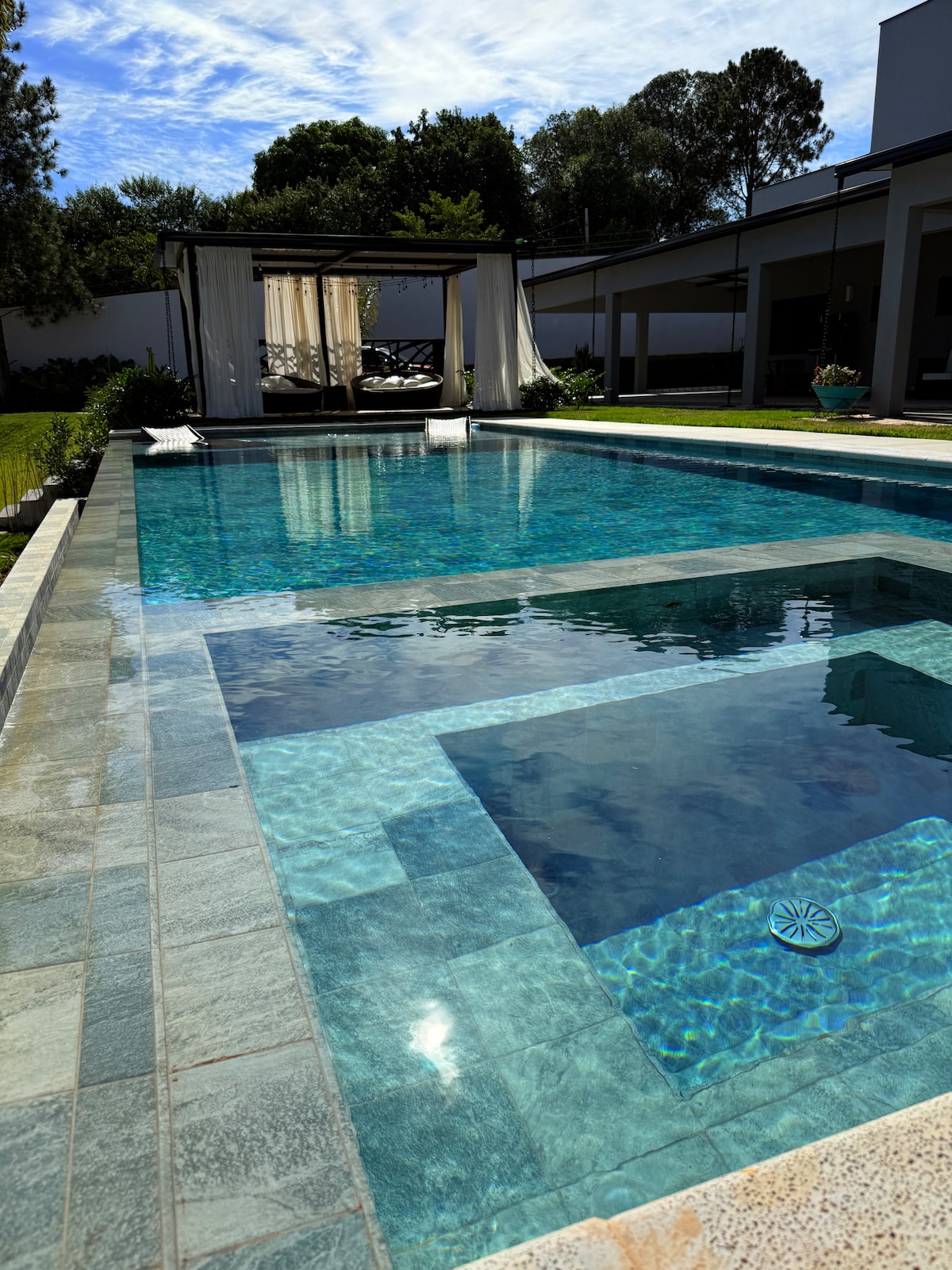 Новая и уютная обстановка, чтобы прожить уникальные моменты с семьей, менее чем в 1 часе от SP. Панорамный бассейн с подогревом, печь для пиццы, дровяная печь, барбекю, игровая комната, бильярдный стол, пинг-понг, пляжный теннис, пергола, гамак, 4 люкса с кондиционером и телевизором Smart TV, полностью оборудованная кухня и все удобства, которых заслуживает ваша семья.