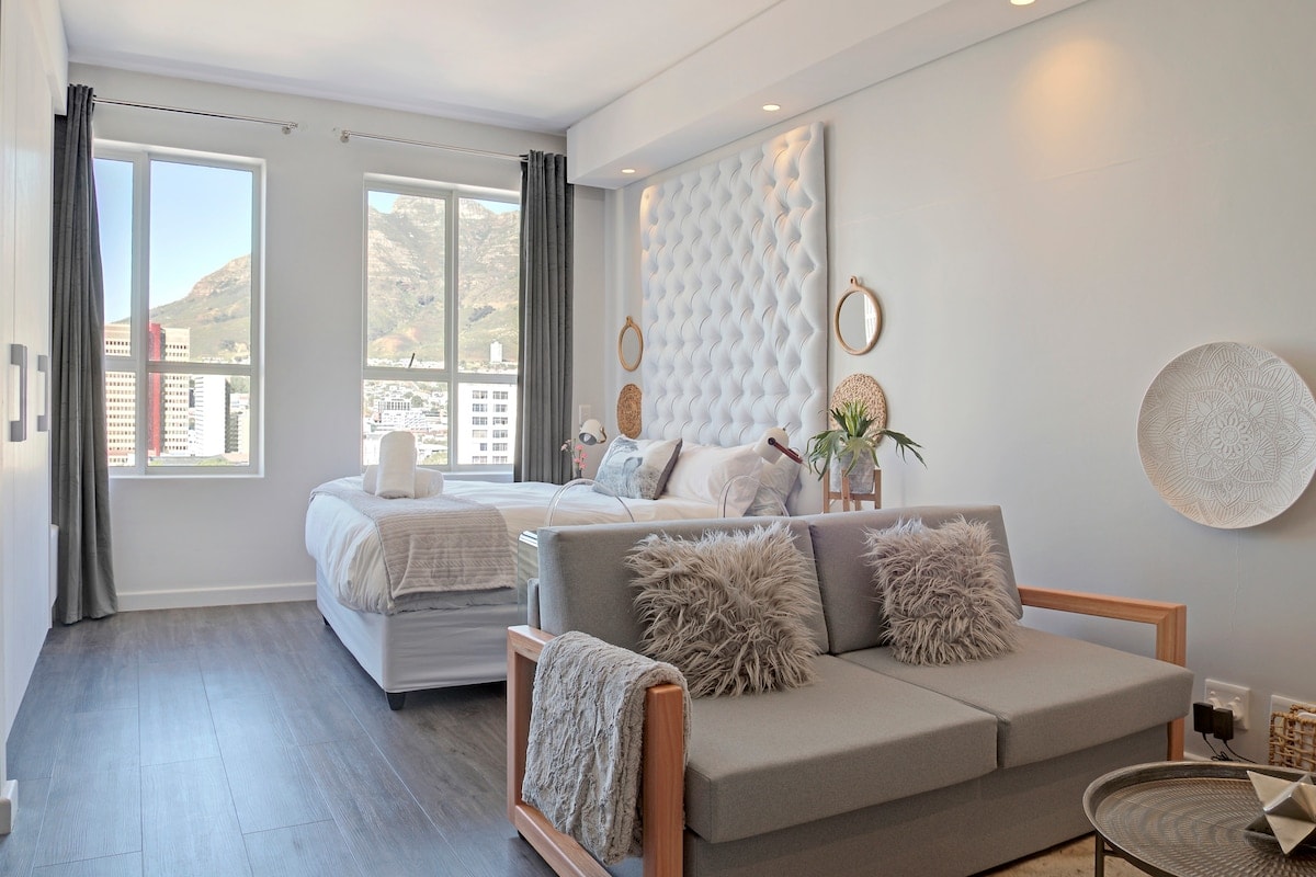 THE BEST VIEWS - in the middle of Cape Town's CBD. The Lookout is a pristine 62 sqm, 1.5 bedroom top floor apartment in the heart of Cape Town's CBD, with the rare quadruple view - enjoy uninterrupted views of the entire city bowl, Table Mountain, Lion's Head and the Harbour Bay. All just within 500m walking distance to the town centre. Tastefully decorated with top-end, pristine finishes and filled with art and greenery, The Lookout offers you a unique experience in Cape Town you won't forget.