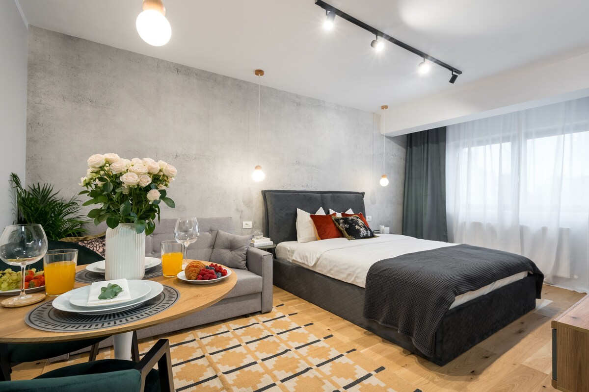 Красивая и светлая студия расположена в центре Бухареста, прямо на бульваре Когальничану, всего в нескольких минутах ходьбы от Старого города и парка Чисмиджу. Месторасположение мудрое, оно не становится лучше, чем это. До этого места легко добраться на общественном транспорте (автобусе и метро). Эта стильная студия была полностью отремонтирована в 2021 году с высокими стандартными материалами и имеет все необходимое для идеального отдыха.