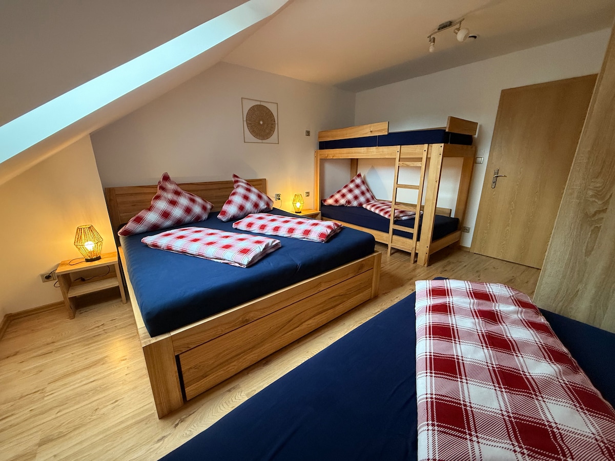 Совершенно новая дизайнерская квартира в центре Харрахова. Вместимость 4 человека. Особенности: потрясающий вид на лес и небольшую реку прямо из всех комнат, в центре Гаррахова. Идеальная база для активного отдыха (катание на лыжах, походы, велосипедные прогулки и т. д.) или тихий оазис для отдыха и расслабления у камина; почитайте книгу у удобной кровати у окна, слушая реку; или загорать весь день на террасе, выходящей на юг с видом на лес.
