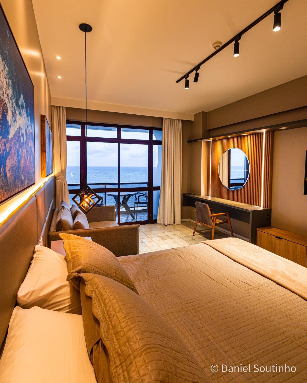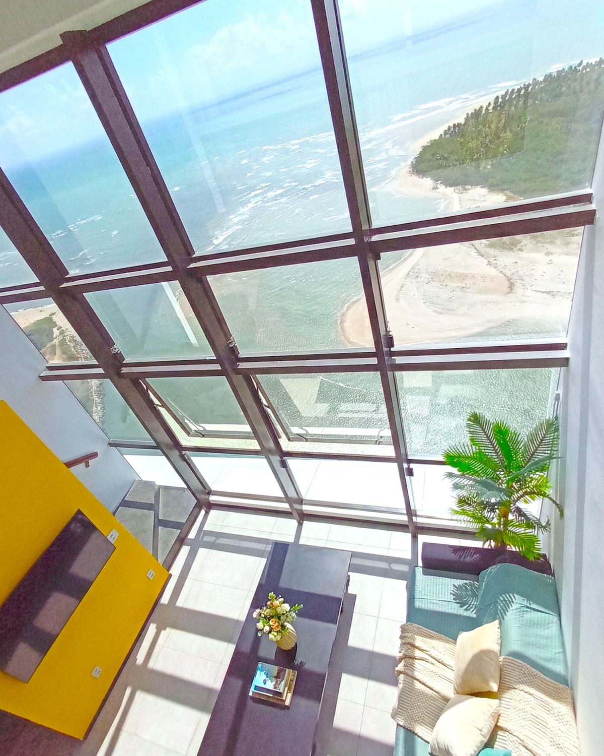 Двухуровневый лофт с двойной высотой потолка, 34-й этаж, у моря, с панорамным видом на пляж Барра-де-Жангада, весело проведите время всей семьей в этом уникальном и стильном месте или насладитесь деловой поездкой в спокойной, тихой и супер комфортной обстановке. ОСНОВНЫЕ РЕКОМЕНДАЦИИ: 01 — МЕЖДУНАРОДНЫЙ АЭРОПОРТ РЕСИФИ (13 км). 02 — ТОРГОВЫЙ ЦЕНТР GUARARAPES (8 км). 03 — ПЛЯЖ ПОРТУ-ДЕ-ЧИКЕН (42 км).