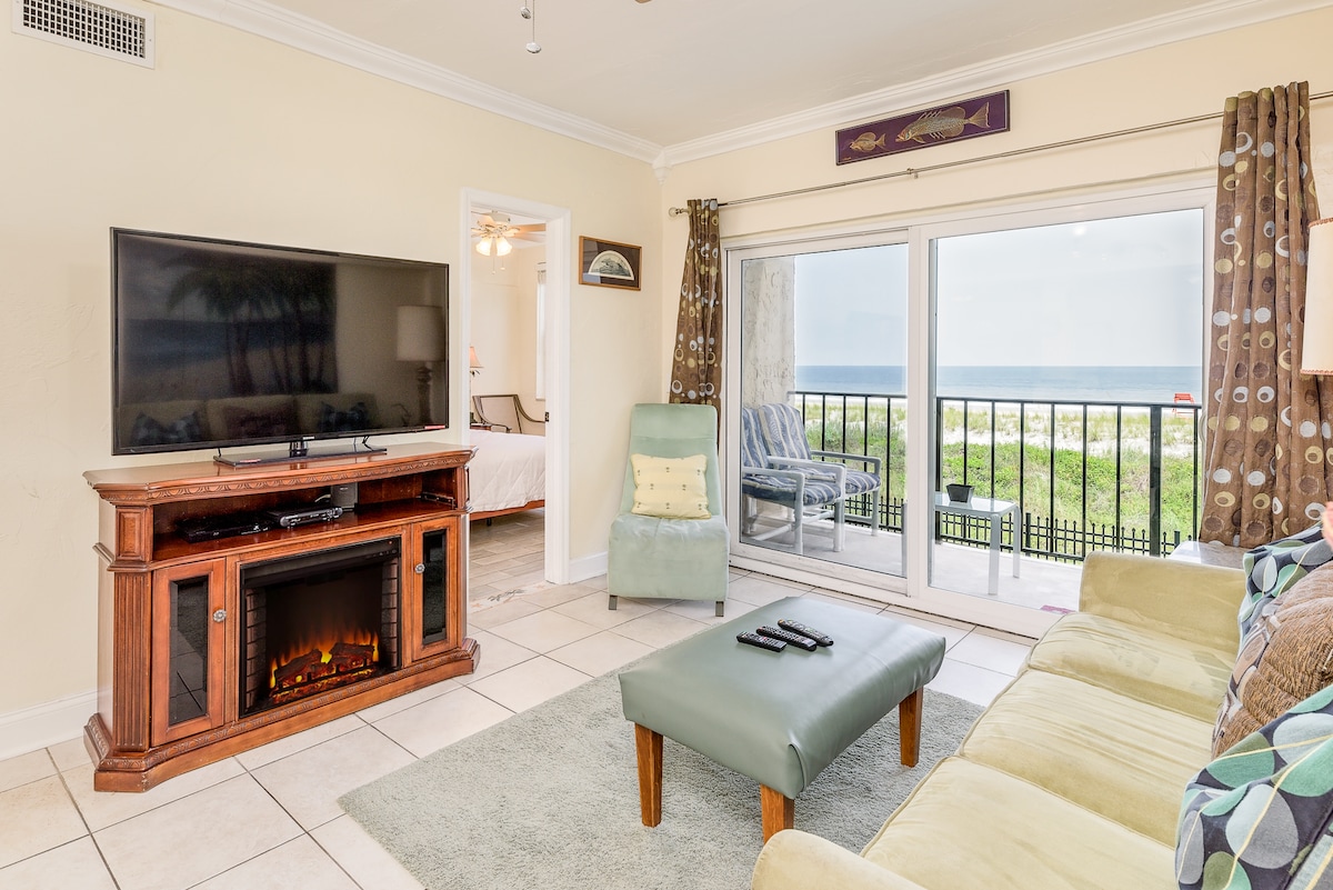 Пляжный кондоминиум на БЕРЕГУ ОКЕАНА с захватывающим видом! *В этом номере 1/1 с очень просторной гостиной. *Стиральная машина и сушилка включены *Балкон с частной лестницей на пляж прямо в песок. *Полностью оборудованная кухня. *Пляжные стулья и полотенца * В номере очень удобная кровать размера Queen size. *полноразмерный комод *Smart TV *Камин *Два дивана *Рабочую зону/рабочий стол. *WI-FI * На балконе есть обеденный стол с 4 стульями, где можно выпить!