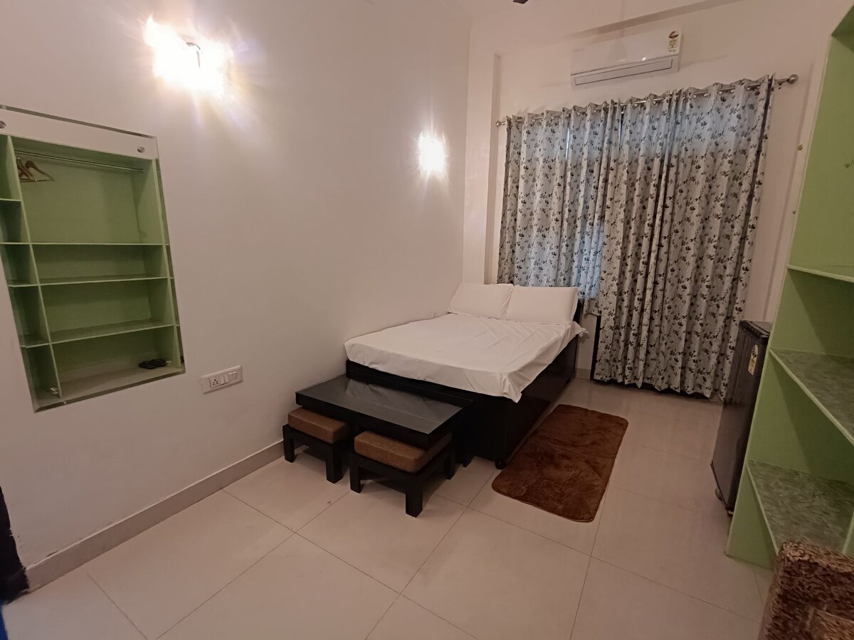 Мы предлагаем одну отдельную комнату с собственной ванной. Гости могут пользоваться общей гостиной, патио и садом. Отдельный вход. Базовый завтрак включен в тариф. Другие блюда, если это действительно необходимо, могут быть предоставлены по предварительному уведомлению и за дополнительную плату от 100 до 250 рупий. Очень ограниченное использование домашней кухни возможно за дополнительную плату в размере 50 рупий в день. Домашняя стиральная машина может быть использована за дополнительную плату в размере 100 рупий за загрузку. Внутри можно припарковать двухколесный автомобиль.
