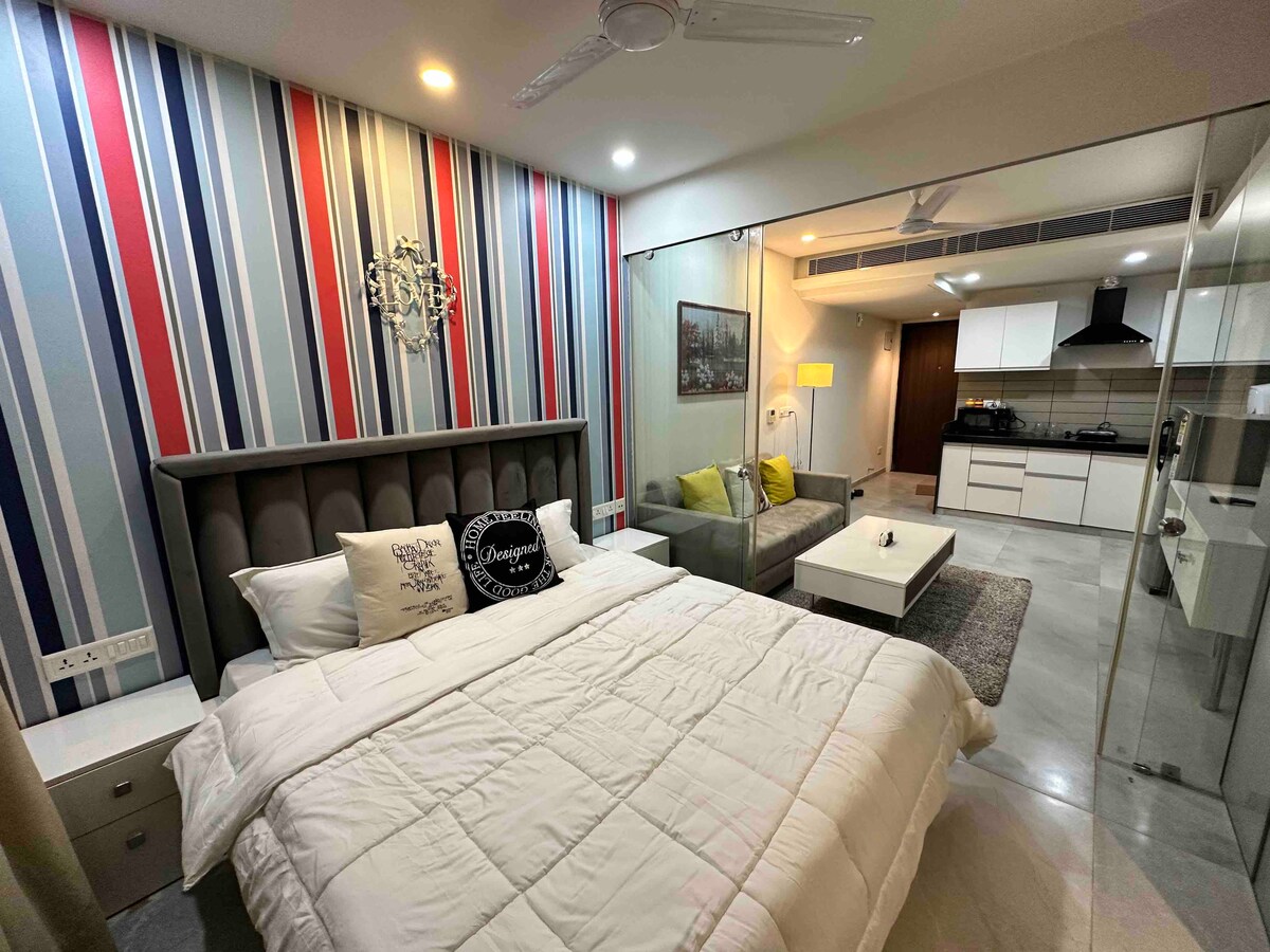 Centrally Located Apartment with railway station just 4 mins away? - you get it Fast Wifi along with 43 inch TV and OTTs for entertainment? -you get it Microwave, Refrigerator, RO, Induction for fooding needs? - you get it Access to gym & infinity pool? - you get it Work Desk for completing all your office work? - you get it! This beautiful and spacious 1BHK studio apartment leaves nothing behind when it comes to comfort and amenities. Perfect for couples and solos, Need we say more?