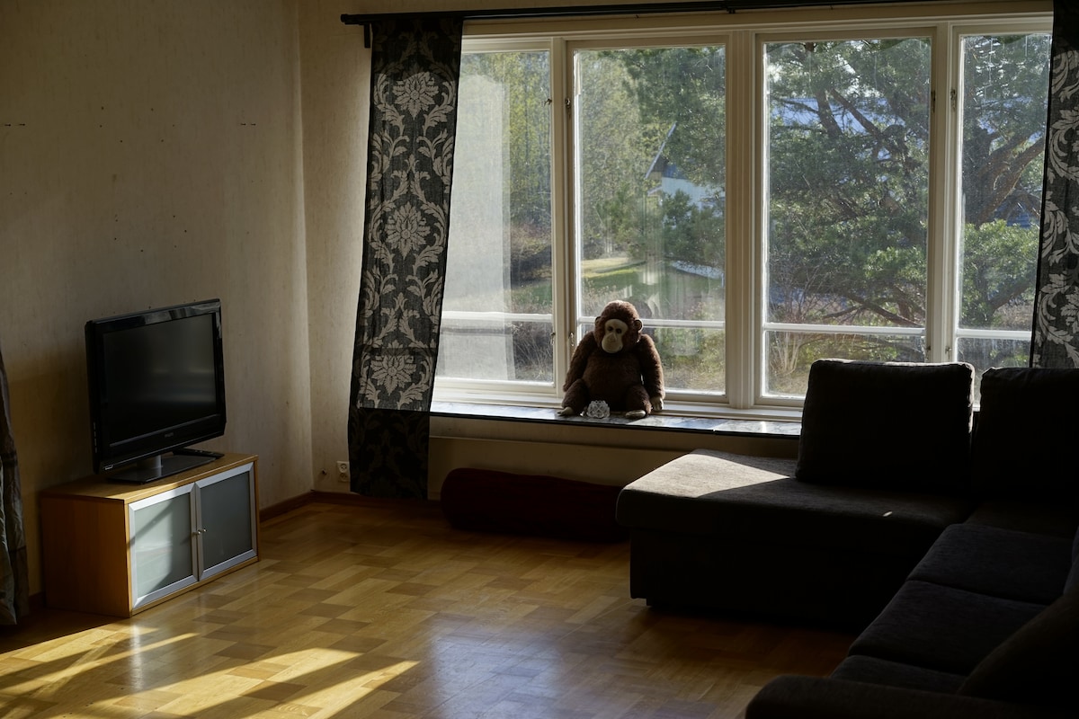 Комфортабельная квартира в спокойном районе недалеко от Люнгаверка. В каждой из двух спален установлена односпальная кровать. В гостиной есть камин и выход на собственный балкон. В ванной комнате есть ванна, а гости могут пользоваться общей прачечной. До небольшого магазина находится шведский банкID, а до города всего 10 минут езды.