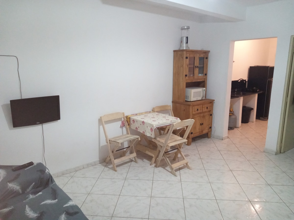 Небольшая меблированная квартира, идеально подходит для пар или 2 человек. Всего в 200 метрах от станции Itapevi -Centro Рядом с торговым центром, банками, супермаркетами и другими предприятиями Новое жилье в безопасном, просторном, светлом и спокойном жилье. Оснащен полностью оборудованной кухней В закрытом гараже с автоматическими воротами есть свободные места. Смарт-телевизор и оптоволоконный Интернет 500 Мбит/с.