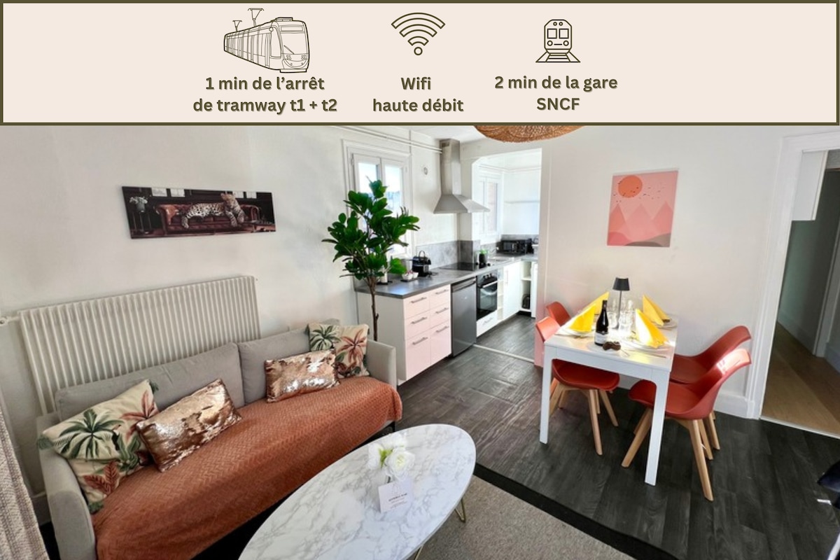 Nous avons entièrement rénové notre appartement en plein centre ville pour en faire un espace chaleureux et agréable à vivre. Tout est pensé pour votre confort : un salon accueillant, une cuisine équipée, une chambre avec une literie confortable et une salle de bain moderne. Vous y trouverez tout le nécessaire pour un séjour sans souci : WiFi, machine à laver, sèche-cheveux… Que vous soyez en voyage ou en déplacement, nous serons ravis de vous accueillir !