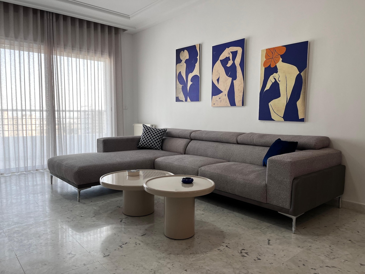Комфортабельная квартира недалеко от Карфагена, в 8 минутах от Сиди-Бу-Саида и Ла-Марсы и в 18 минутах от аэропорта. Чистый стиль, полностью оборудованная кухня, быстрый Wi-Fi, теплая атмосфера и пространства, предназначенные для удаленной работы, отдыха или длительного проживания. Удобное расположение, чтобы легко исследовать этот район. Вас встретят увлеченные хозяева, внимательные к вашему комфорту. Открытия, отдых и свобода действий: ваша единственная задача — наслаждаться незабываемым отдыхом