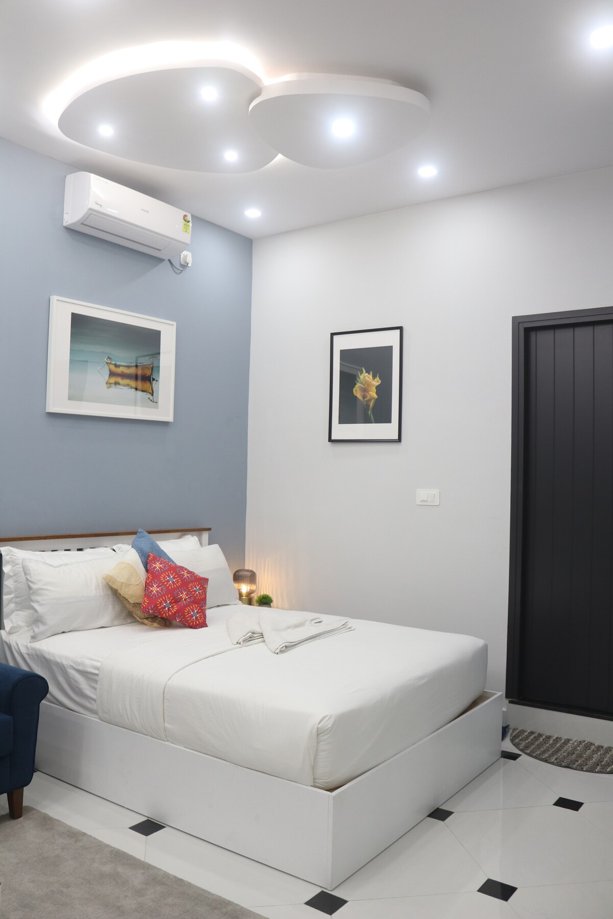 Добро пожаловать в нашу новую, просторную квартиру 1-BHK, идеально подходящую для пар и семей, ищущих комфорт и удобство. В спальне есть двуспальная кровать размера Queen size и мягкий ортопедический матрас для спокойного ночного сна. Расслабьтесь в большой гостиной с 43-дюймовым телевизором Smart TV, молниеносным Wi-Fi и отдельным рабочим местом. В распоряжении гостей очень чистая ванная комната с предметами первой необходимости. Полностью оборудованная кухня оснащена основными ингредиентами, высококачественной техникой и посудой для кулинарных приключений.