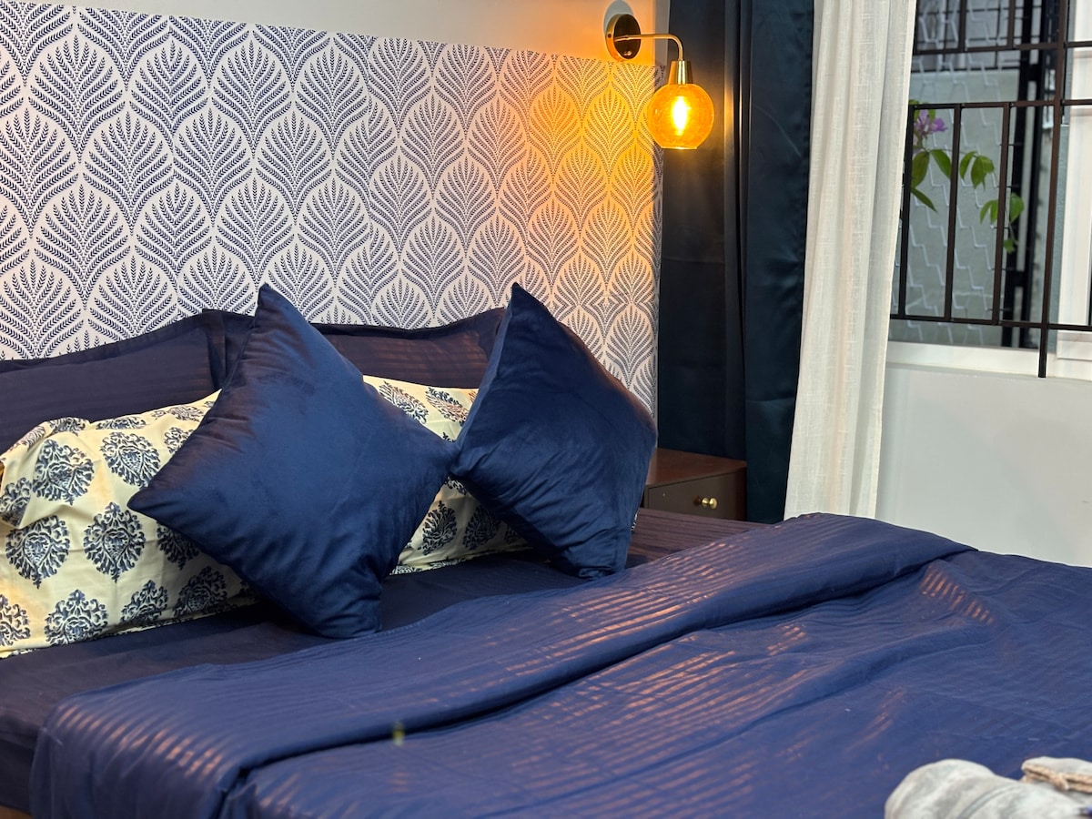 ЖИЛЬЕ BLUO - дома, отмеченные наградами! Частная студия в центре города Корамангала. Идеально подходит для одиночных гостей и пар - в нескольких минутах езды от HSR Layout, Indiranagar и Bannerghatta Road. Просторная студия с балконом, дизайнерской кроватью, рабочим столом, ванной комнатой, холодильником, микроволновой печью, кухонной утварью и т. д., а также садом на террасе на свежем воздухе. Ежедневная аренда «все включено»: Wi-Fi, Netflix/Prime, уборка, стиральная машина, коммунальные услуги, 100% резервное питание,лифт.