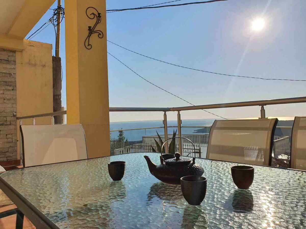 Просторная квартира с 1 спальней на холме с видом на море