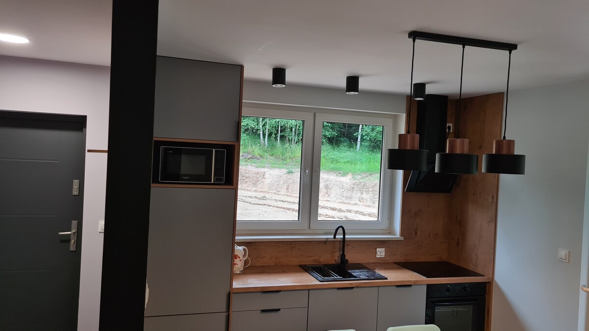 Расположение — рядом с крупнейшими туристическими достопримечательностями: На машине 10 минут до Цеплице — с парком Здруйови и термальными ваннами Цеплице, 15 минут до Карпача — 25 минут до Шклярской Порембы, 15 минут до Еленей-Гуры. Описание коттеджа: Современный, полностью оборудованный коттедж вместимостью до 5 человек: ✔ Гостиная с мини-кухней ✔ Полностью оборудованная кухня: индукционная плита, духовой шкаф, посудомоечная машина, холодильник. ✔ Кондиционер для комфорта в теплые дни ✔ Ванная с душем. ✔ Наверху: большая спальня с тремя кроватями.