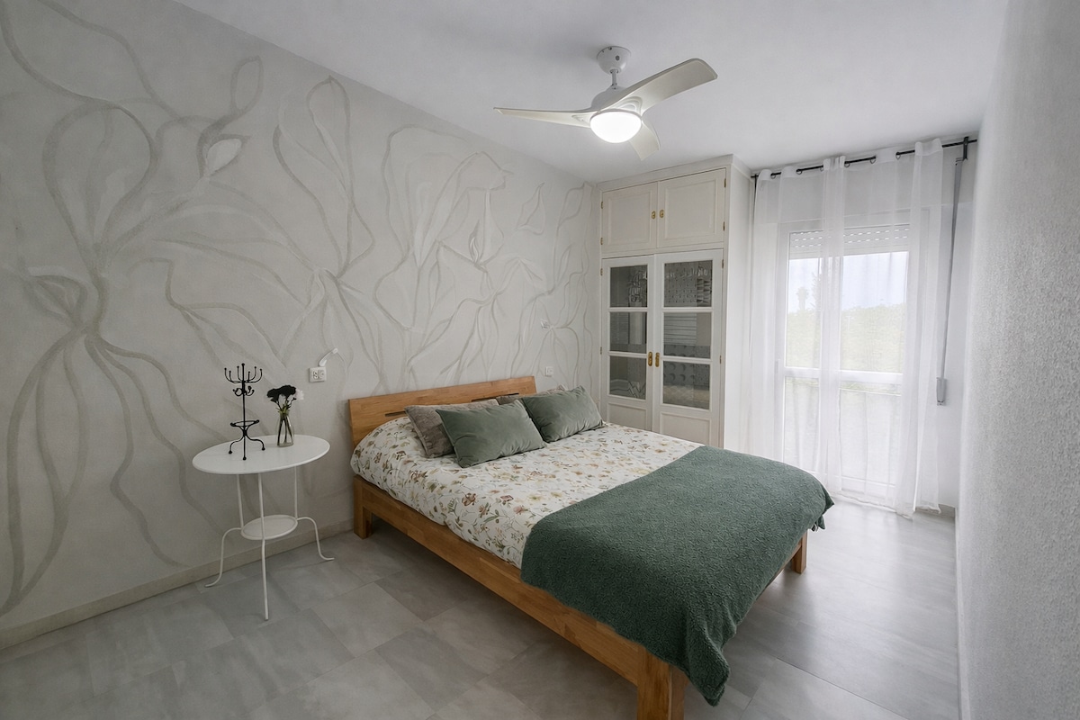 Casita с прекрасным видом на одну спальню на одном этаже между деревянным полом и еще один диван-кровать в гостиной. Ванна находится в пещере с большим душем. Полностью оборудованная кухня с посудомоечной машиной. Дубовый пол. Кондиционеры. Оптоволоконный Wi-Fi. Прямо внизу есть парковка, что очень важно в летние месяцы, и вы в двух минутах ходьбы от центра старого города Вехер. Очень спокойный и очаровательный район. Оптоволоконный Wi-Fi. Кондиционеры. Барбекю и собственная терраса.