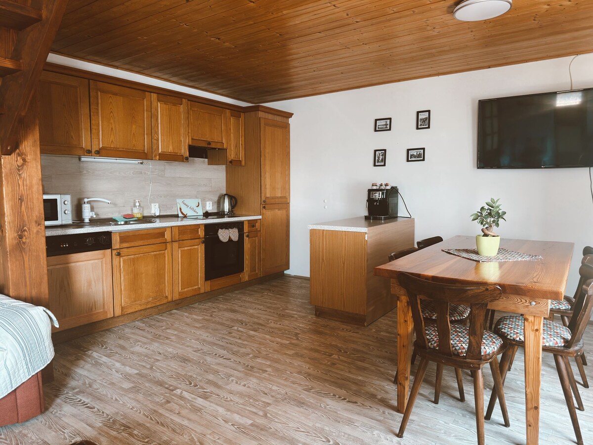 Недавно отремонтированное деревянное здание в природоохранной зоне Изерские горы. Мы предлагаем спокойную обстановку с парковкой и доступом ко многим зимним курортам. Летом можно приехать с велосипедами и насладиться уникальной красотой пейзажей. В зимний период, особенно во время зимних каникул, мы предпочитаем размещение на всю неделю, т.е. с субботы по субботу.