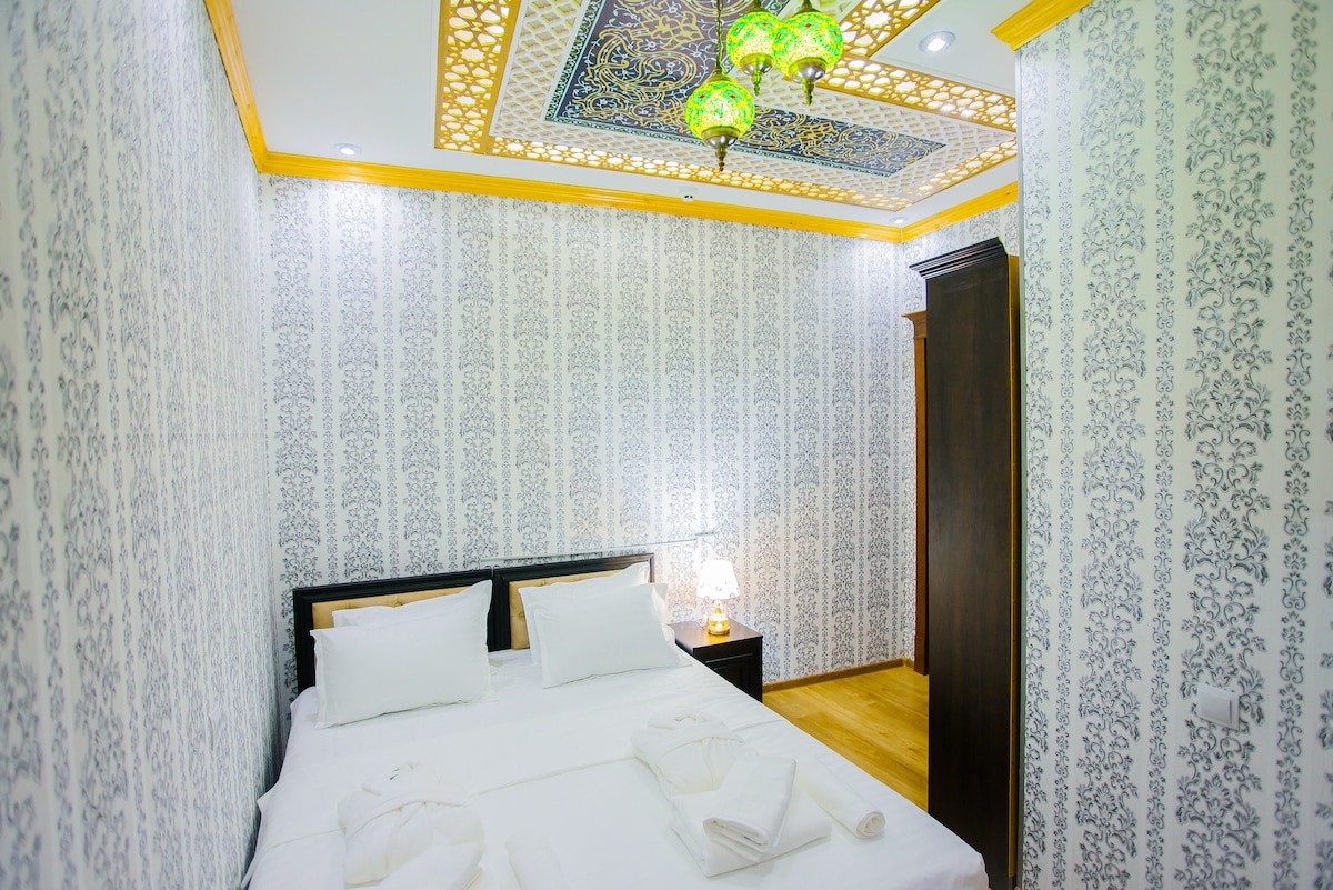 Hotel Ishonch is a bed and breakfast hotel, ideally located in the quite area and in a very center of the city just 3 minute walk away to Guri-Amir mausoleum,6 minute walk to well-known Registan Ansemble. This family run hotel is close to currency exchange center (5 min walk), railway ticket office (4min walk),grocery stores,restaurants. All rooms facilitated with air-conditioning, heating,WiFi, private-bathroom, cable TV. Guests are welcomed with free drink and snacks.Room service is available.