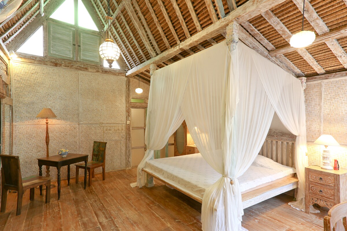 Идеально подходит для пар или двух друзей, которые путешествуют вместе в поисках отдыха на природе с видом на джунгли и рисовую террасу. Остановившись у нас, вы сможете присоединиться к нашему балийскому образу жизни . Вы можете присоединиться к нам на нашей ферме и присоединиться к нашей деревенской церемонии. Сам дом построен из старой переработанной древесины с уникальной винтажной особенностью. К услугам гостей частные панорамные бассейны и кухня . Завтрак включен. Другое питание может быть предоставлено за отдельную плату.