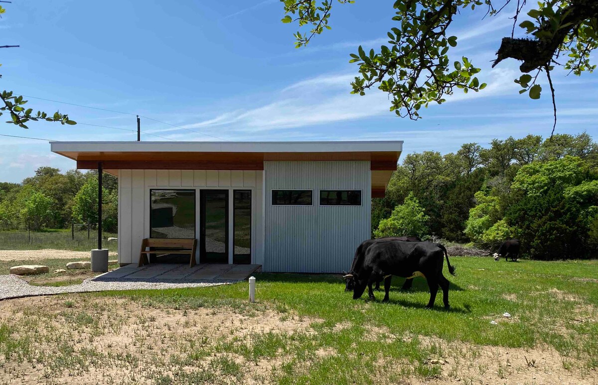 Современный микродом, бассейн и зарядка для электромобиля на 6 акрах