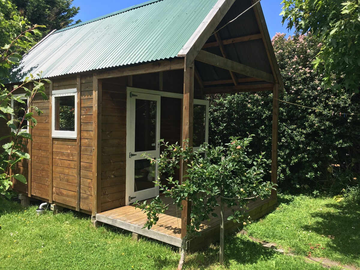 Красивый тихий «крошечный дом» с садом и мезонином; очень простой, но теплый и уютный. Ковровое покрытие, изоляция и двойное остекление. Спальни двое наверху на двух односпальных матрасах. Вам нужно быть достаточно ловким, чтобы подняться по лестнице на спальный лофт. Собственный душ и туалет в нескольких метрах от кабины. Нагреватель, чайник, холодильник, микроволновая печь, тостер и умывальник в салоне. Wi-Fi. Предоставляются простые ингредиенты для завтрака и горячие напитки.
