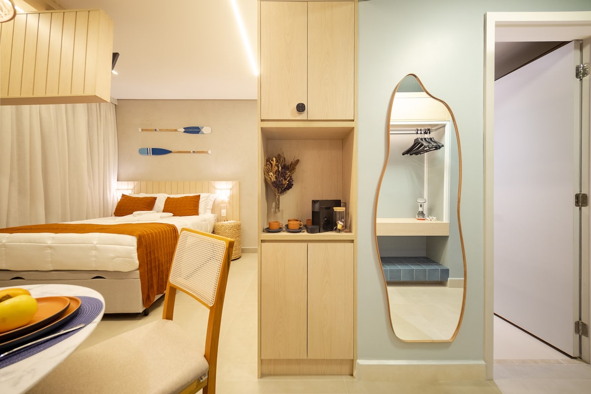 Abrace o descanso em um kitnet tranquilo e bem localizado. A 50 metros da Praia, próx ao Shopping, com os melhores bares, restaurantes e comércio da região! Excelente para Home Office , completo e compacto com : ✅fogão, geladeira, ventilador de teto e portátil , filtro, air fryer, microondas, forno, chuveiro, sanduicheira, cafeteira. ✅cama de casal , sofá-cama. ✅copos,talheres, toalhas, lençóis, travesseiros. ✅TV smart e wifi rápido, ideal também p/ Home Office. ✅Plataforma Streaming.