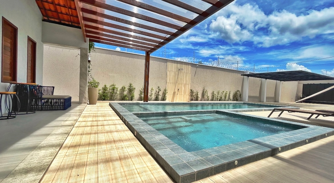 Эксклюзивный уголок для тех, кто хочет насладиться жизнью со стилем, комфортом и природой. В W.A Espaço & Lazer вы найдете идеальное место для проведения дней рождения, встреч или спокойных выходных! Привлекательные особенности: ✅ Бассейн с гидромассажем и водопадом ✅ Излив из натурального белого золота ✅ Деревенская терраса с деревянным столом Зеленая ✅ зона с фруктовым деревом (кешью🌳). ✅ Caramanchão идеально подходит для фото и отдыха ✅ Спальни с ванной ✅ Оборудованная кухня и зона для гурманов с барбекю.