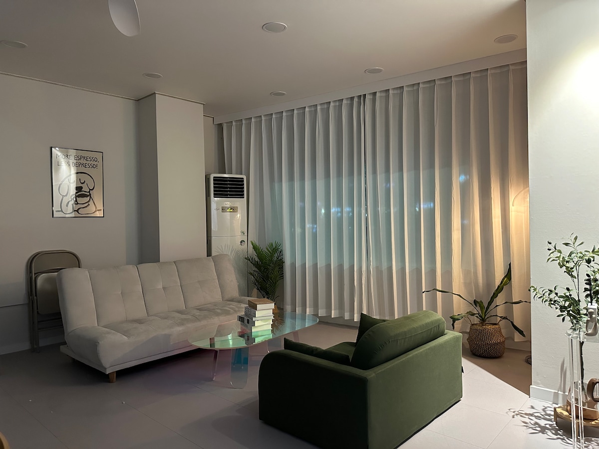 Шерри | Просторный двухкомнатный номер | 3 кровати размера Queen size | Галерея / Ротбак Сентимент 8 минут на машине / Центр Тэджона | Бесплатная парковка