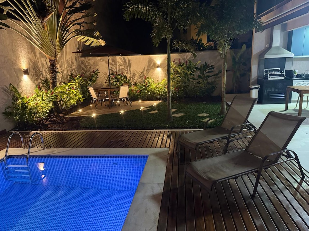 Piscina aquecida, painel led e ar condicionado.
