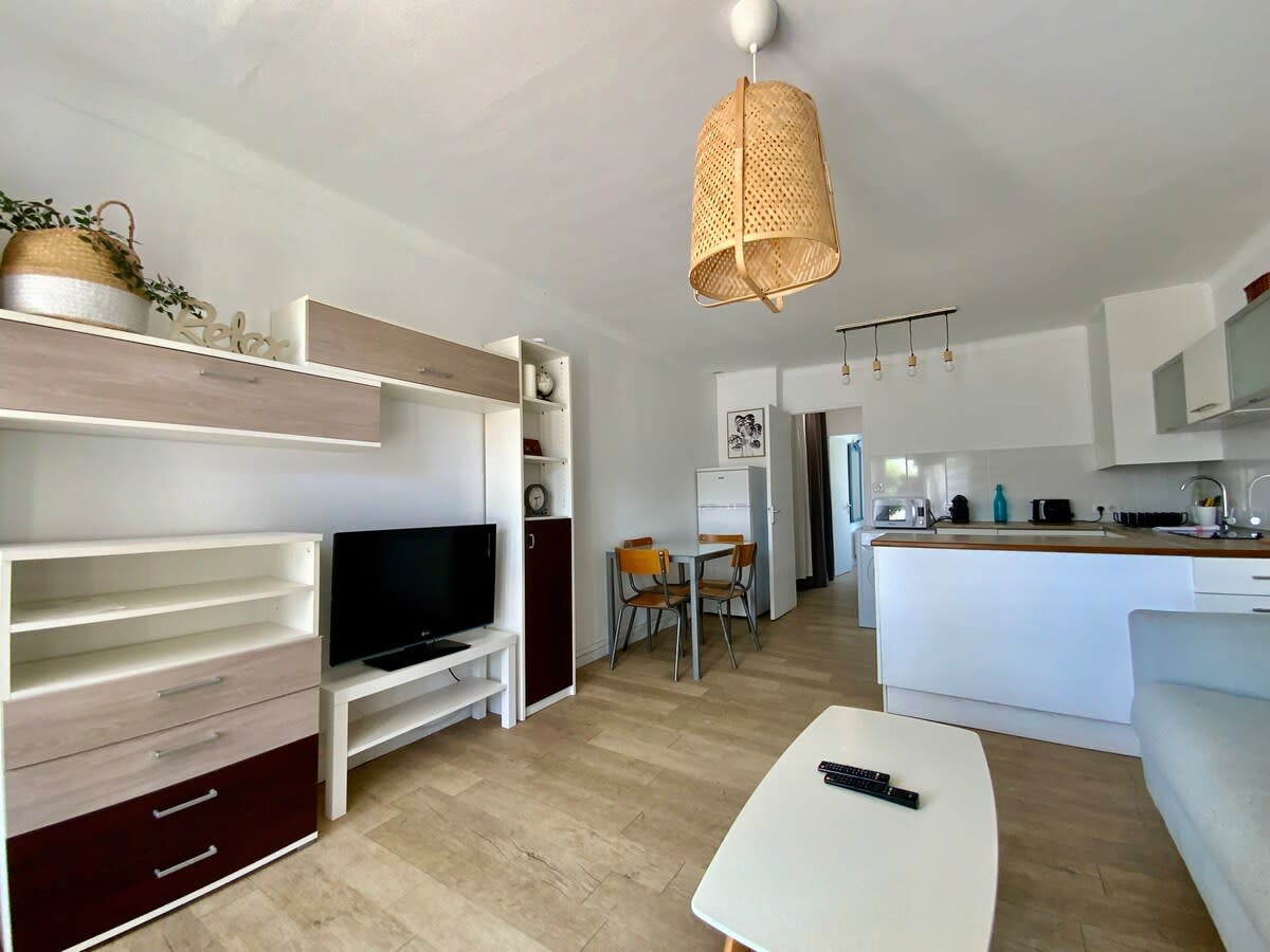 Добро пожаловать на Юг Франции! Наслаждайтесь этой очаровательной квартирой-студией, полностью оборудованной и оформленной по высшему разряду, расположенной в 4-звездочной туристической резиденции, с бассейном (открыт с июня по конец сентября) и прачечной (за отдельную плату). В квартире есть двуспальная кровать размера Queen size (160×200), полностью оборудованная кухня и красивая ванная комната. Доступно для людей с ограниченными возможностями (квартира соответствует стандартам PRM, особенно для глухих людей). Бесплатная парковка в 100 метрах.