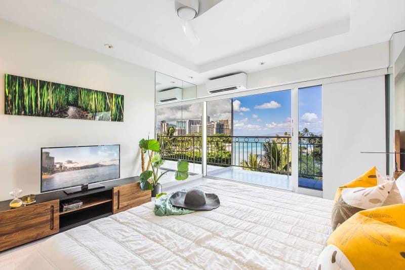 Недавно отремонтированная квартира с 1 спальней и потрясающим панорамным видом на океан! Наслаждайтесь открытой планировкой с двуспальной кроватью размера King size, полноразмерной техникой и диваном-кроватью в гостиной. К услугам гостей центральный кондиционер, быстрый Wi-Fi, телевизоры в обеих комнатах и большая раздвижная дверь для уединения. Выйдите на балкон Джульетты, чтобы полюбоваться видом на океан, включая фейерверк в пятницу вечером. Прогуляйтесь до торгового центра Ala Moana, отеля Hilton и лагуны Duke's Lagoon, а также до других мест. Крытая парковка за 33 доллара за ночь, круглосуточная охрана, прачечная в здании.